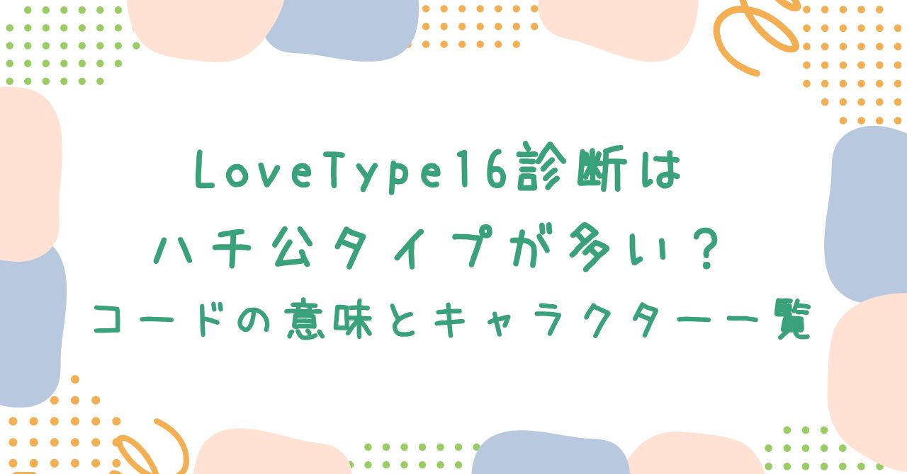『LoveType16診断』とは、今SNSで大きな話題になっている恋愛診断です。 今や有名人やインフルエンサーなども注目し、診断結果をSNSで報告しているLoveType16診断。 恋愛傾向や相性を細かく分析してくれ、 当たっててビックリした という声が続出しているから驚きですね。 診断結果は16種類のキャラクターで表現され、ちょっとクセのある個性キャラも魅力なんです。 そこで今回は『LoveType16診断はハチ公タイプが多い?コードの意味とキャラクター一覧』と題し、 自分のタイプだけでなく、友達やパートナーのタイ... -